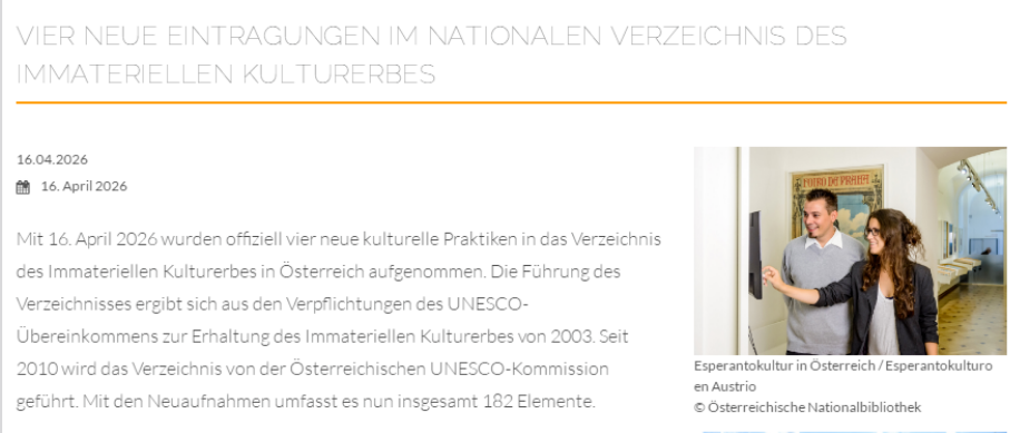 世界语被奥地利列为国家非物质文化遗产目录世界语被奥地利列为国家非物质文化遗产目录