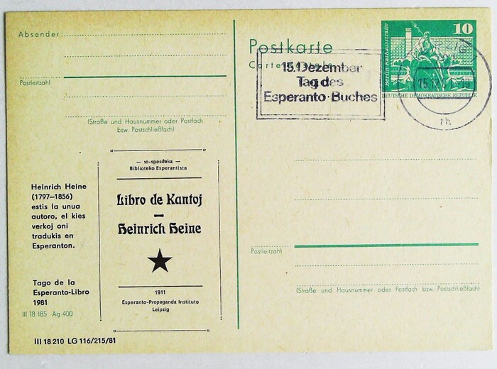 1981年莱比锡世界语图书日明信片