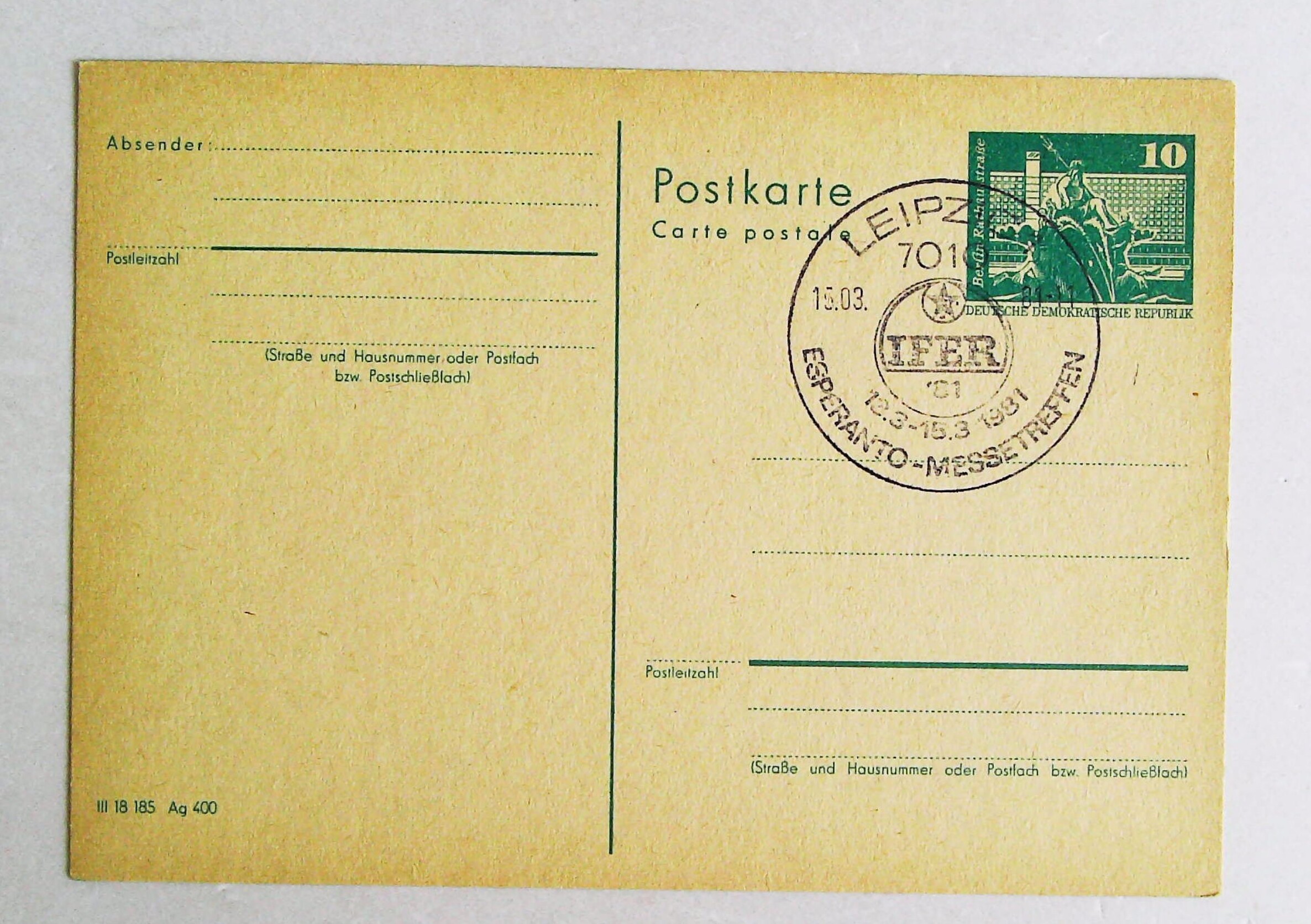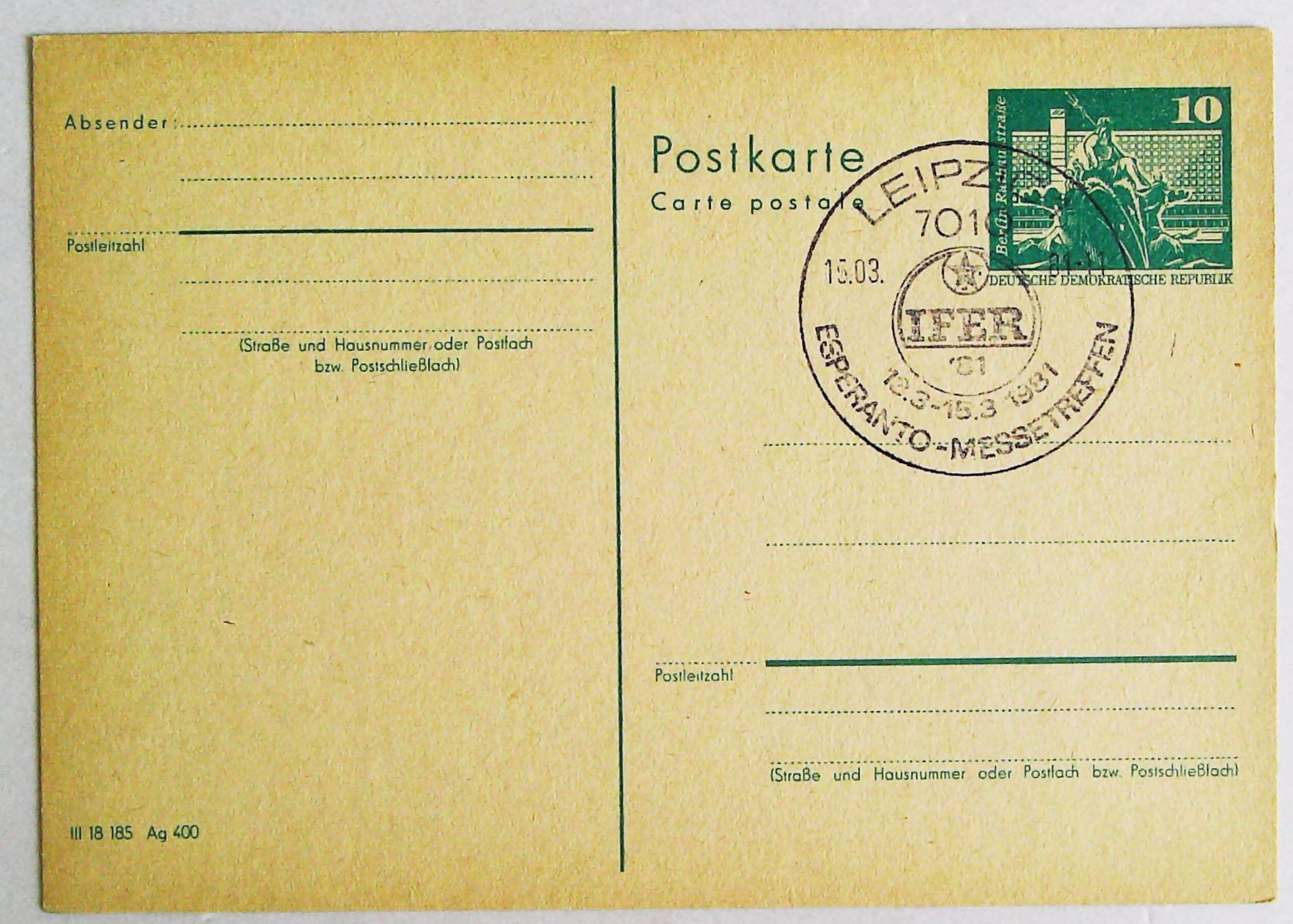 1981年莱比锡世界语展览会明信片