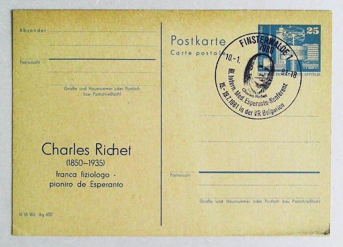 1981年民主德国印制的Charles Richet纪念明信片