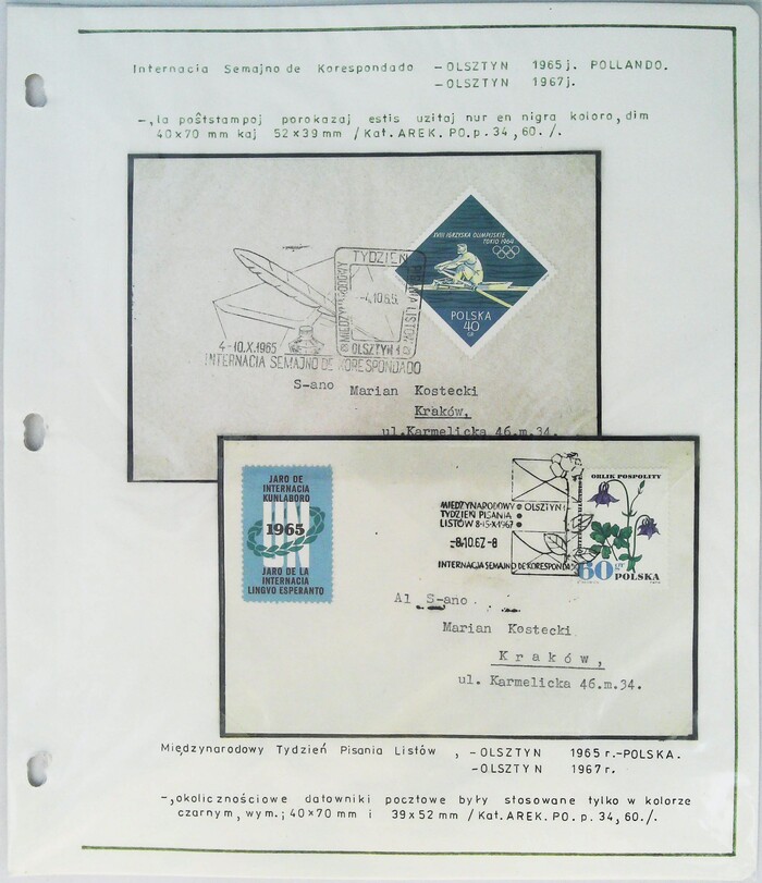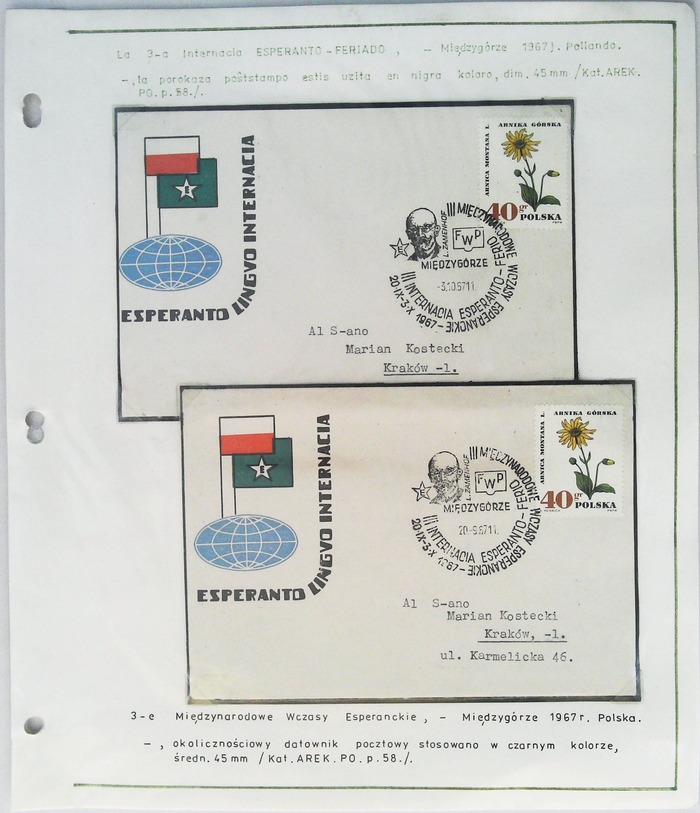 1967年波兰第3届国际世界语节实寄明信片展片