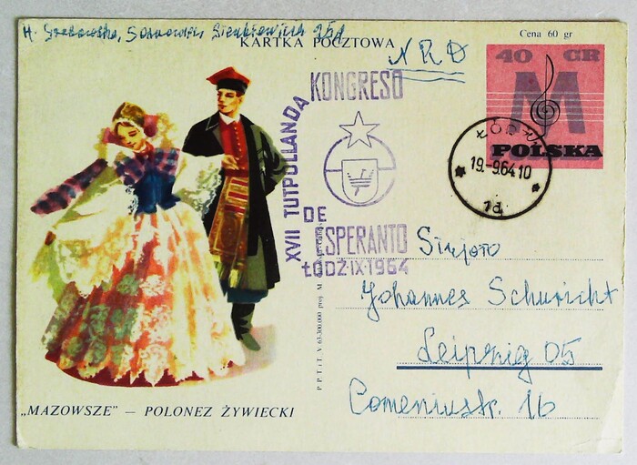 1964年第17届波兰世界语大会实寄明信片