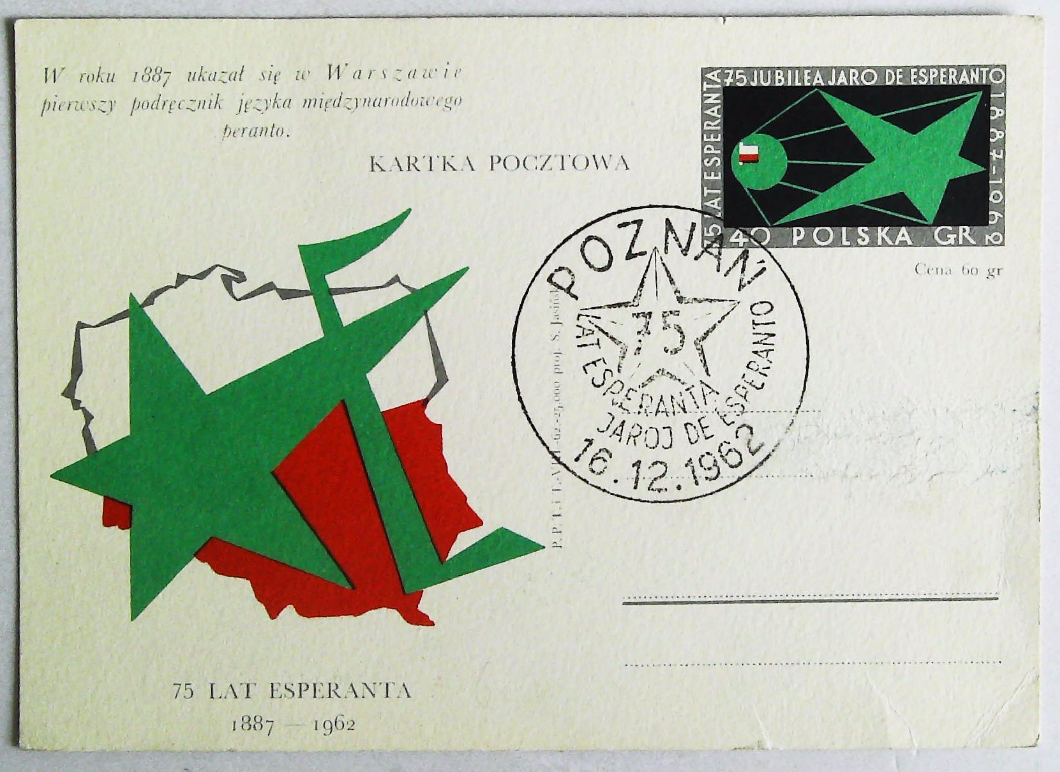 1962年波兹南世界语诞生75周年明信片
