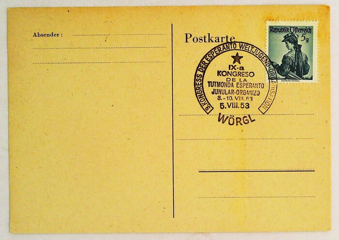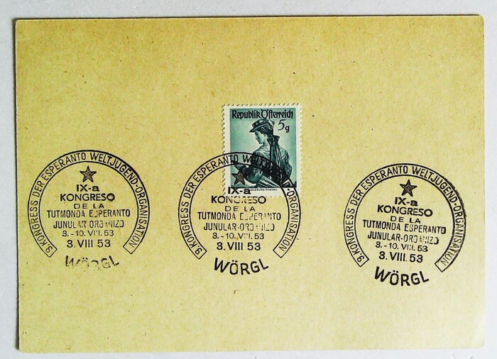 1953年沃格尔第9届国际青年世界语大会纪念戳(载体明信片)