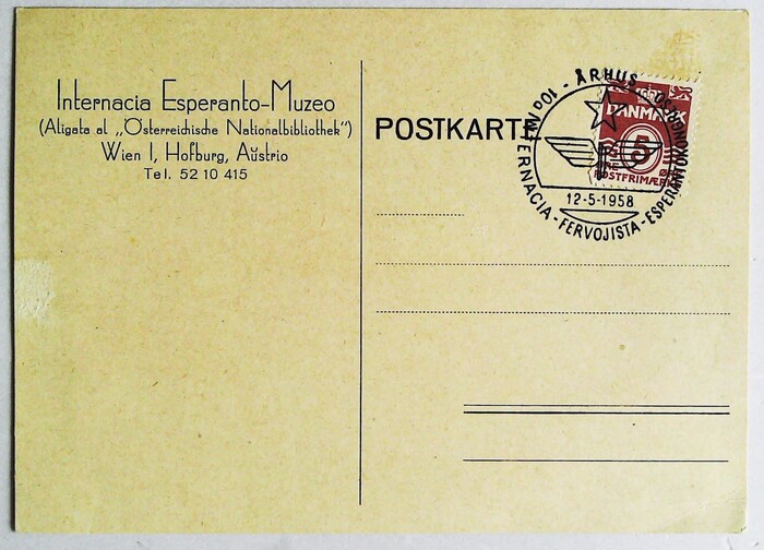 1958年奥胡斯第10届国际铁路员工世界语大会明信片
