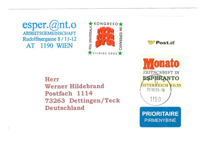 2005年维也纳寄往德国的贴有Monato邮票的纪念封