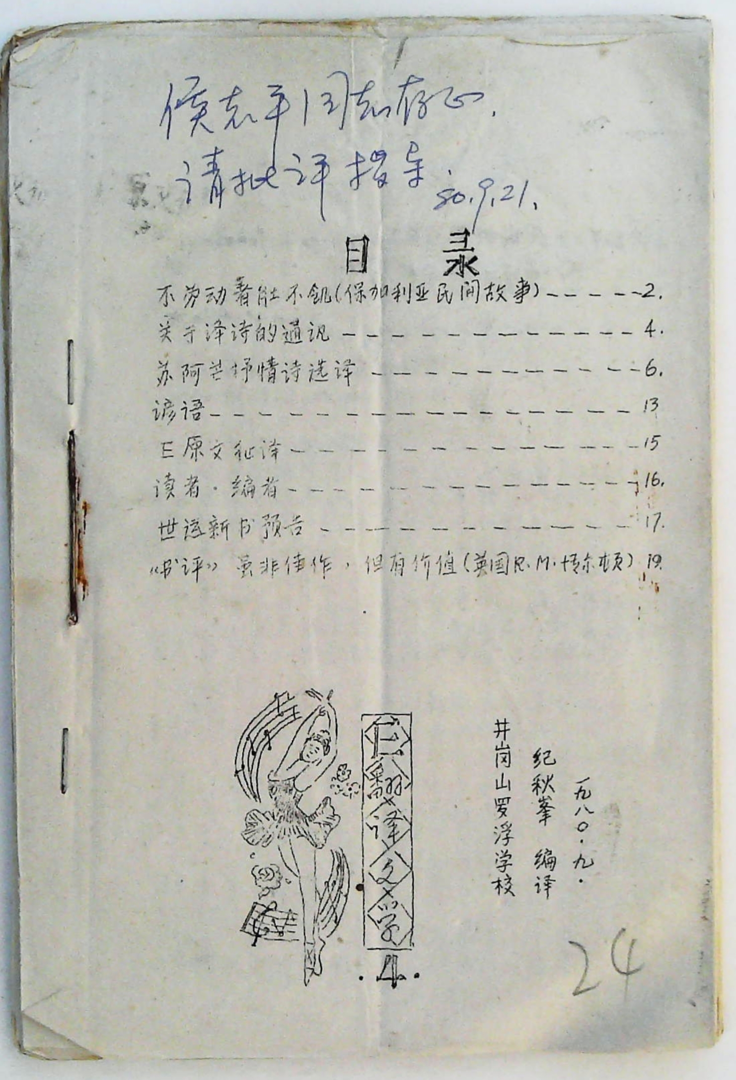 1980年9月《E翻译文学》第4期