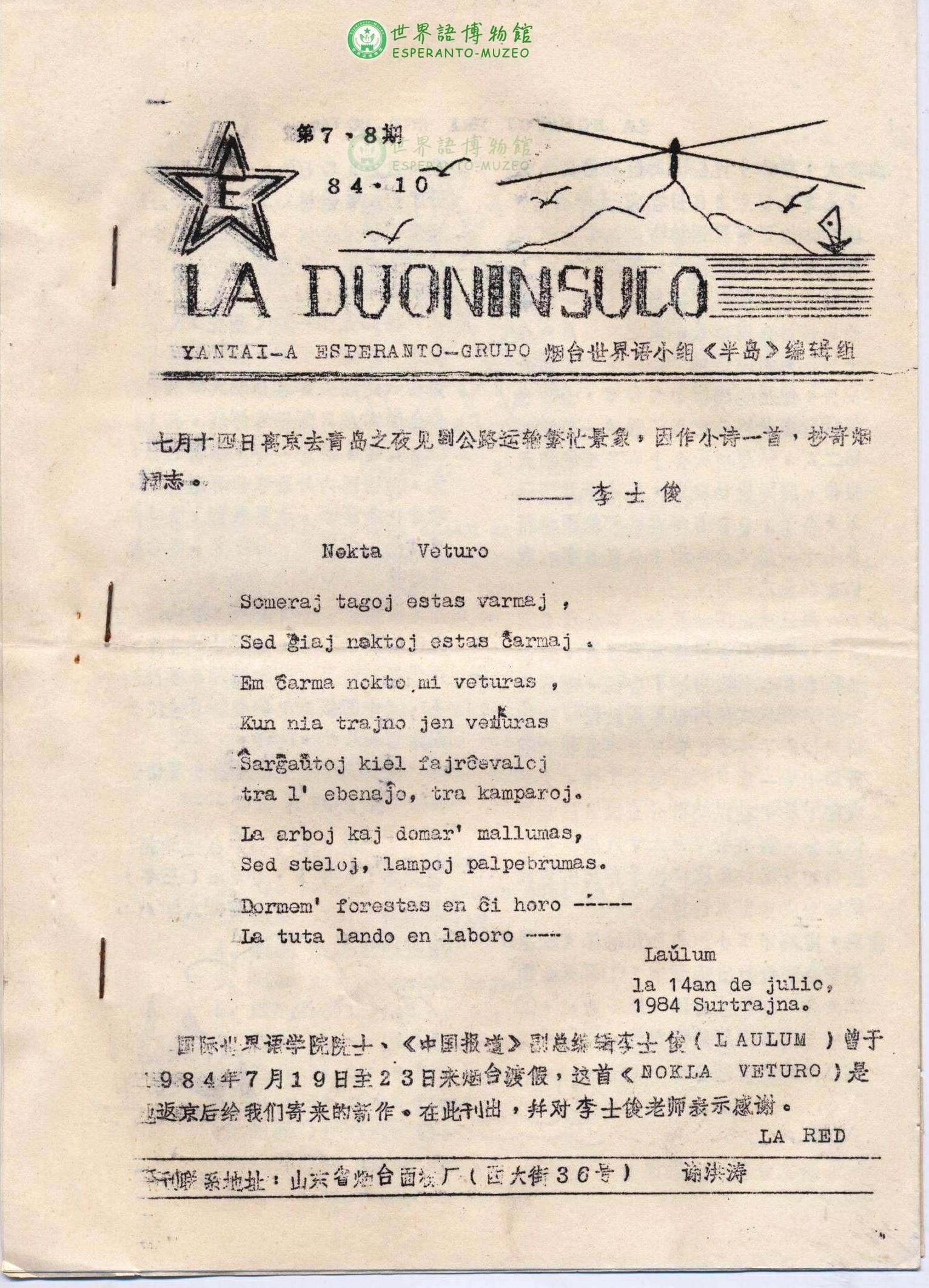1984年第7期烟台世界语小组《半岛》
