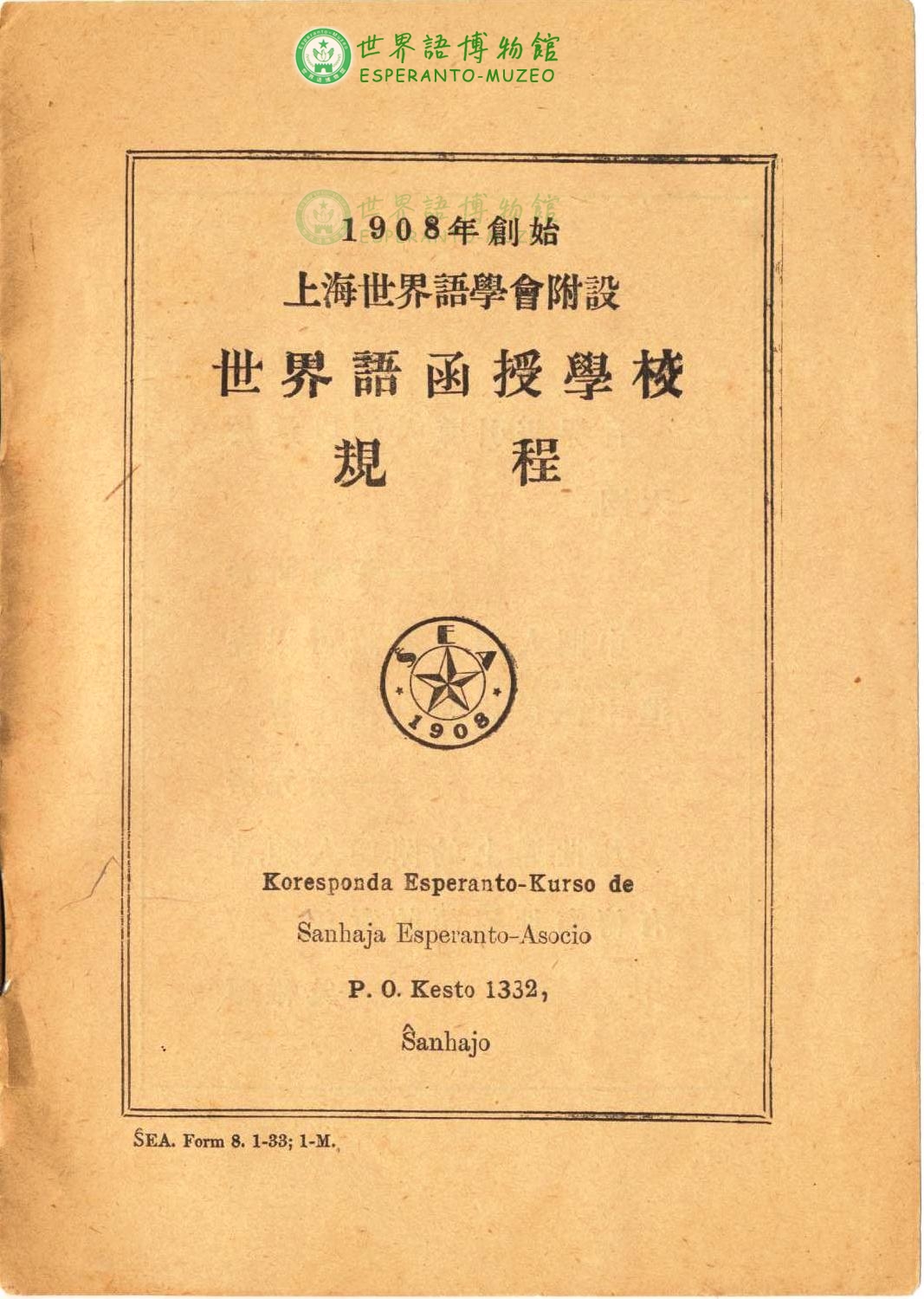 藏品年份:1930捐赠人:中华全国世界语协会藏品级别:待定级文物