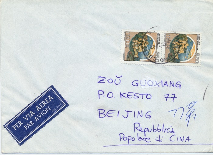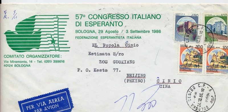 1988年1月28日意大利世界语者致信邹国相所使用的信封