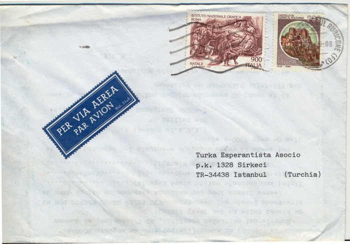 1989年国际天主教世界语者联盟致函土耳其世界语协会所使用的信封