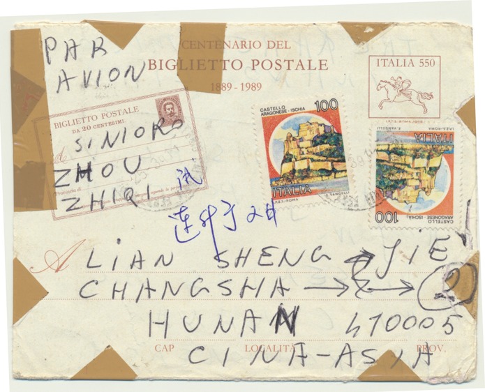 1991年5月9日意大利Federico Gialanze与周志奇通信的信封