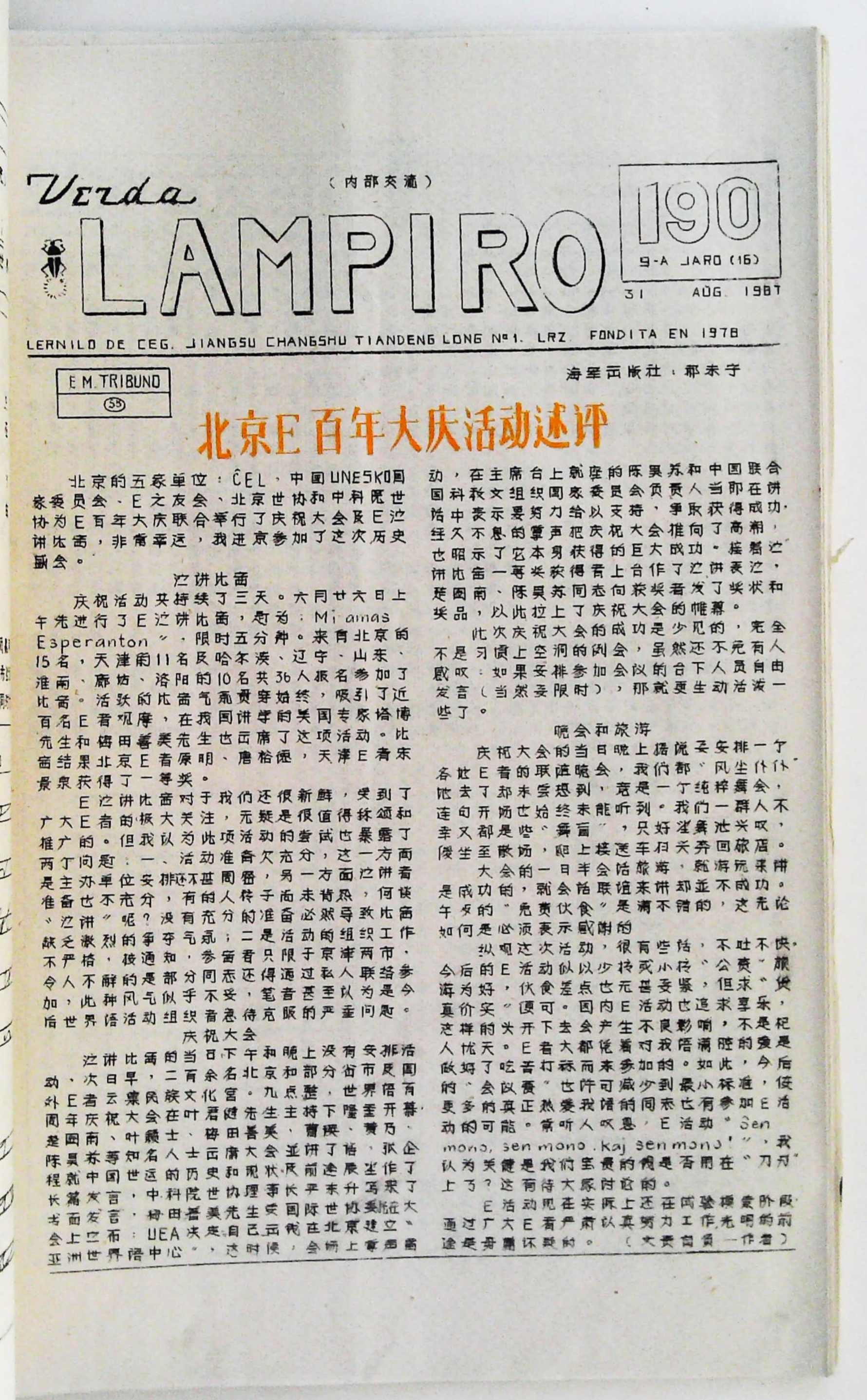 1987年8月31日《Verda Lampiro》第190期