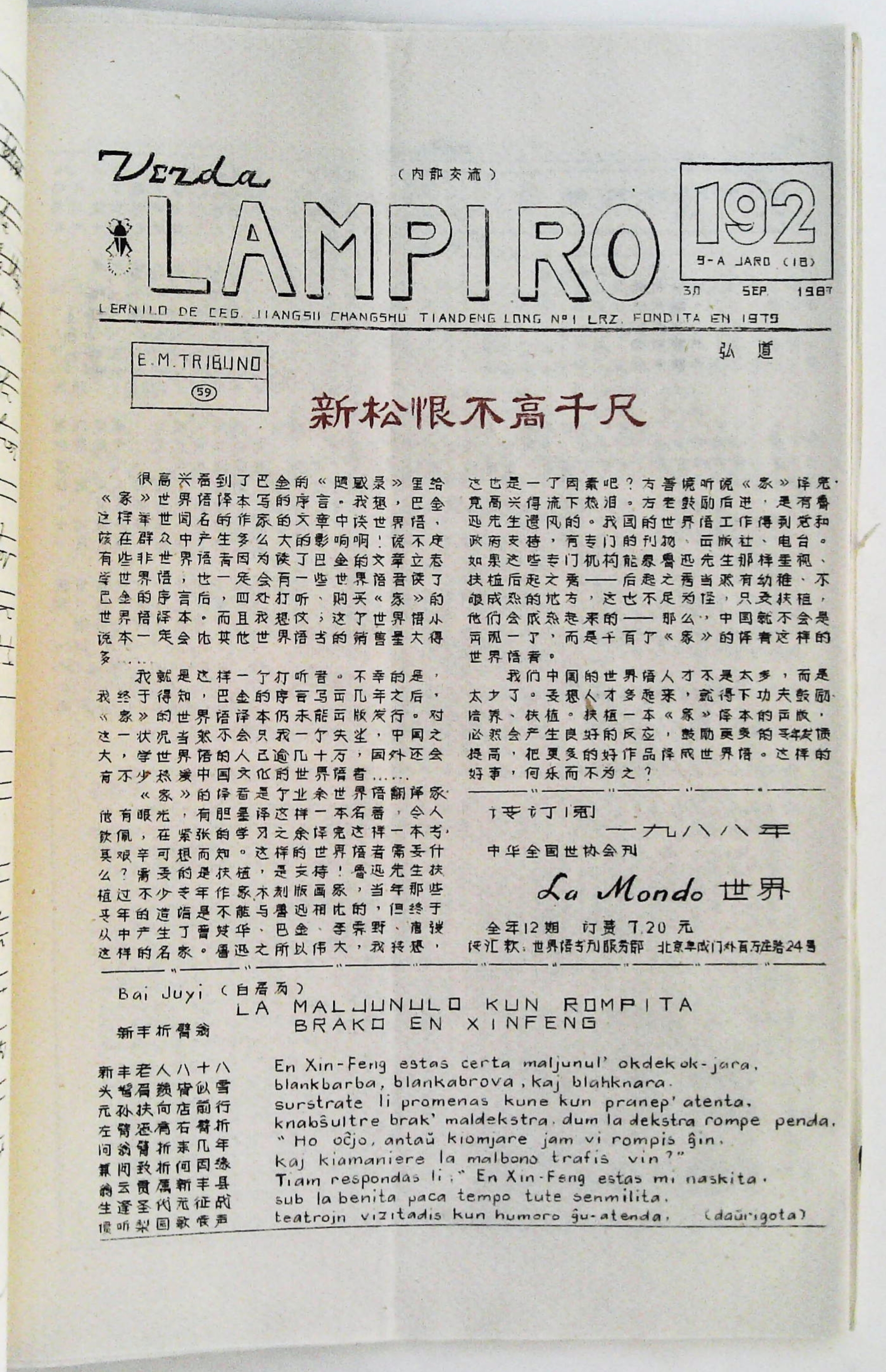1987年9月30日《Verda Lampiro》第192期