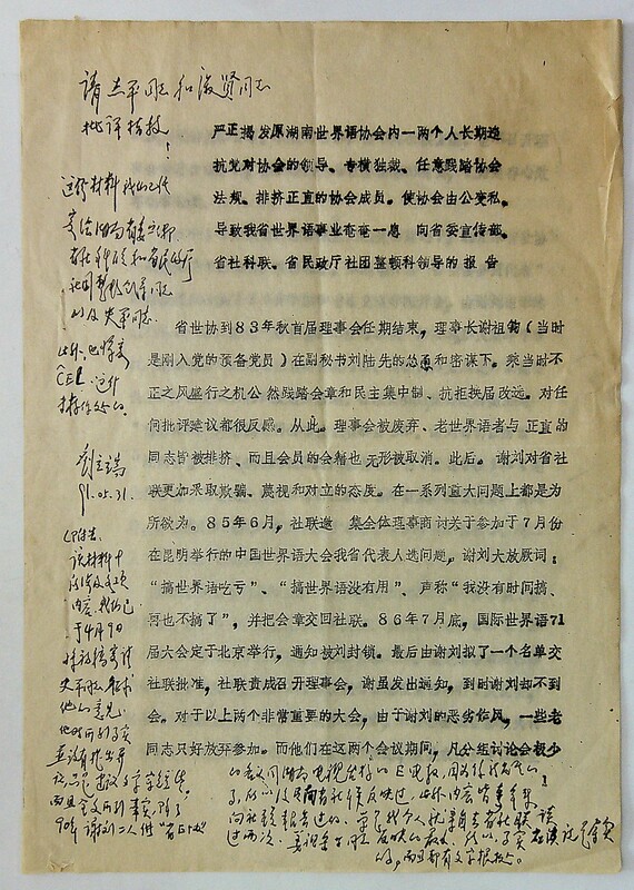 1991年3月25日湘潭世协、长沙世协、郴州市世协“关于揭发湖南世界语协会一两人行为不当”致省委宣传部、省社科联、省民政厅的报告