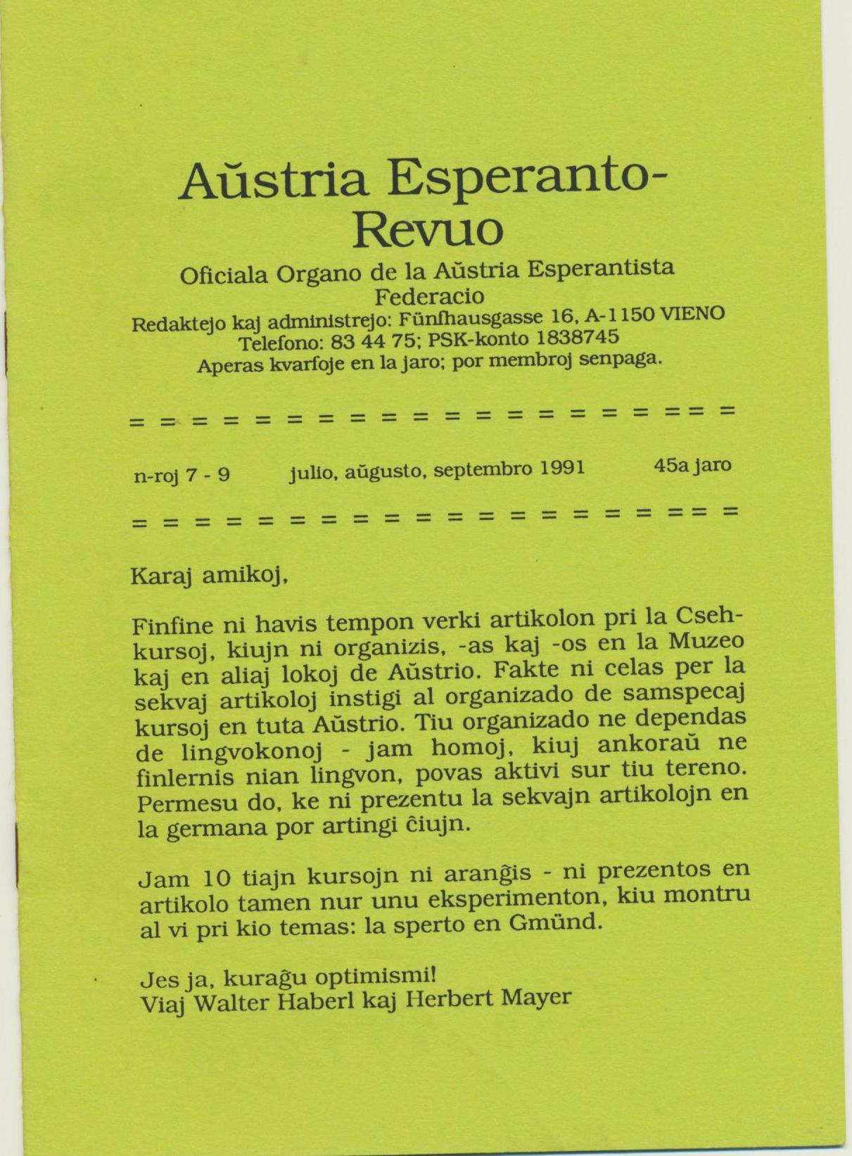 1991年《Austria Esperanto-Revuo》第7-9期