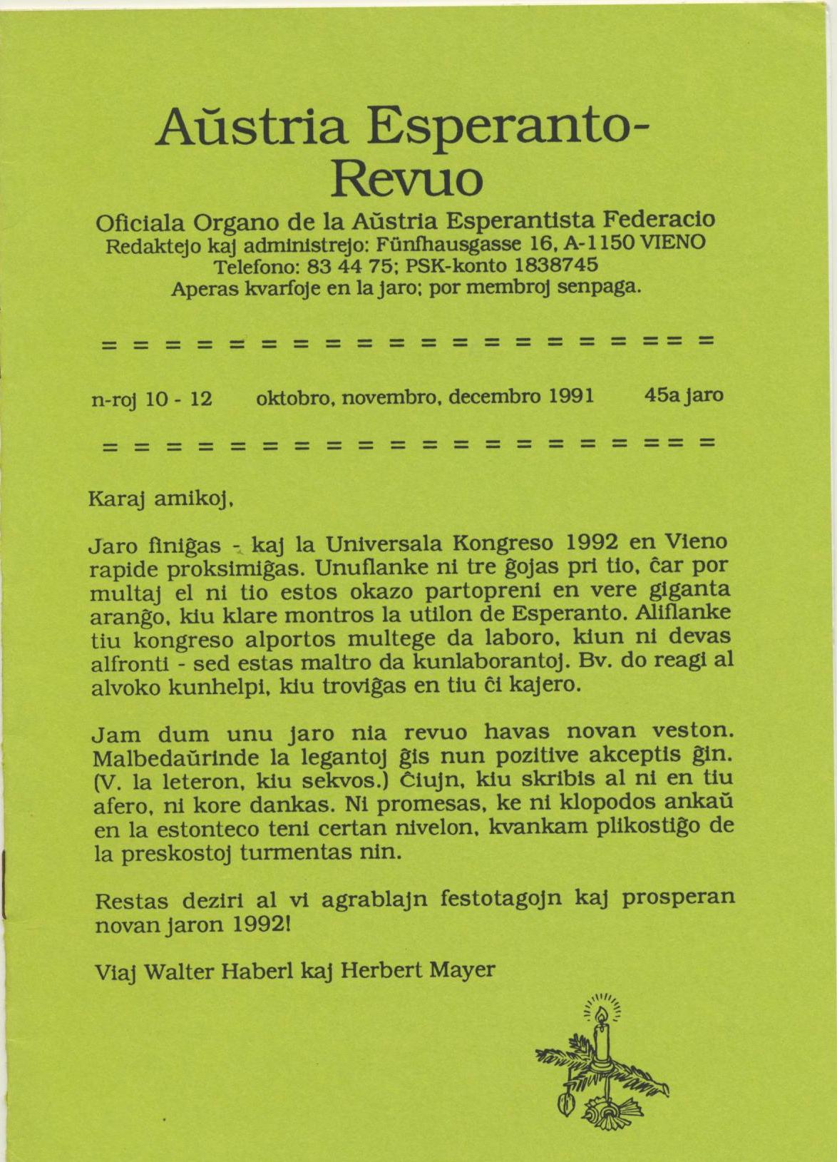 1991年《Austria Esperanto-Revuo》第10-12期