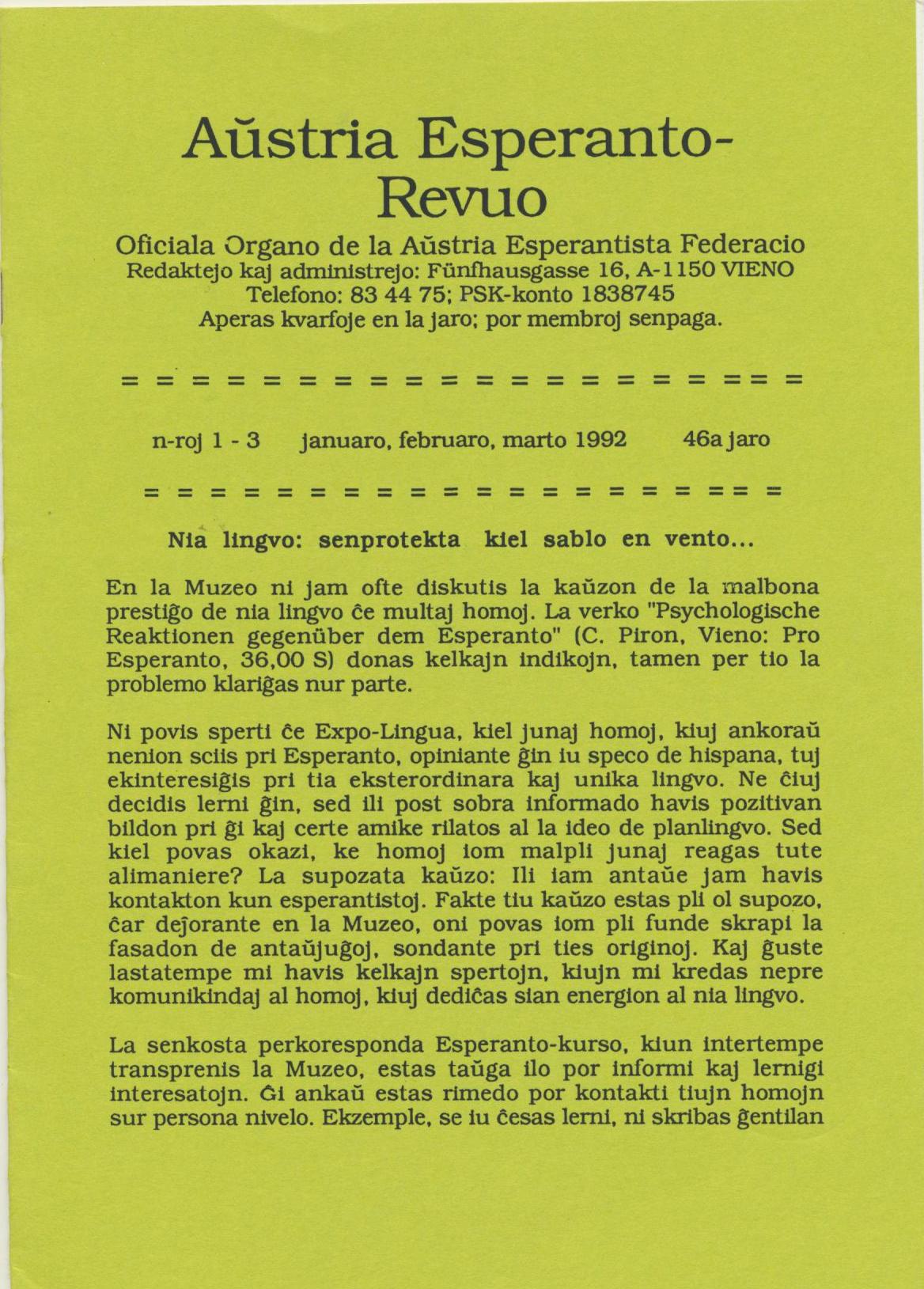 1992年《Austria Esperanto-Revuo》第1-3期