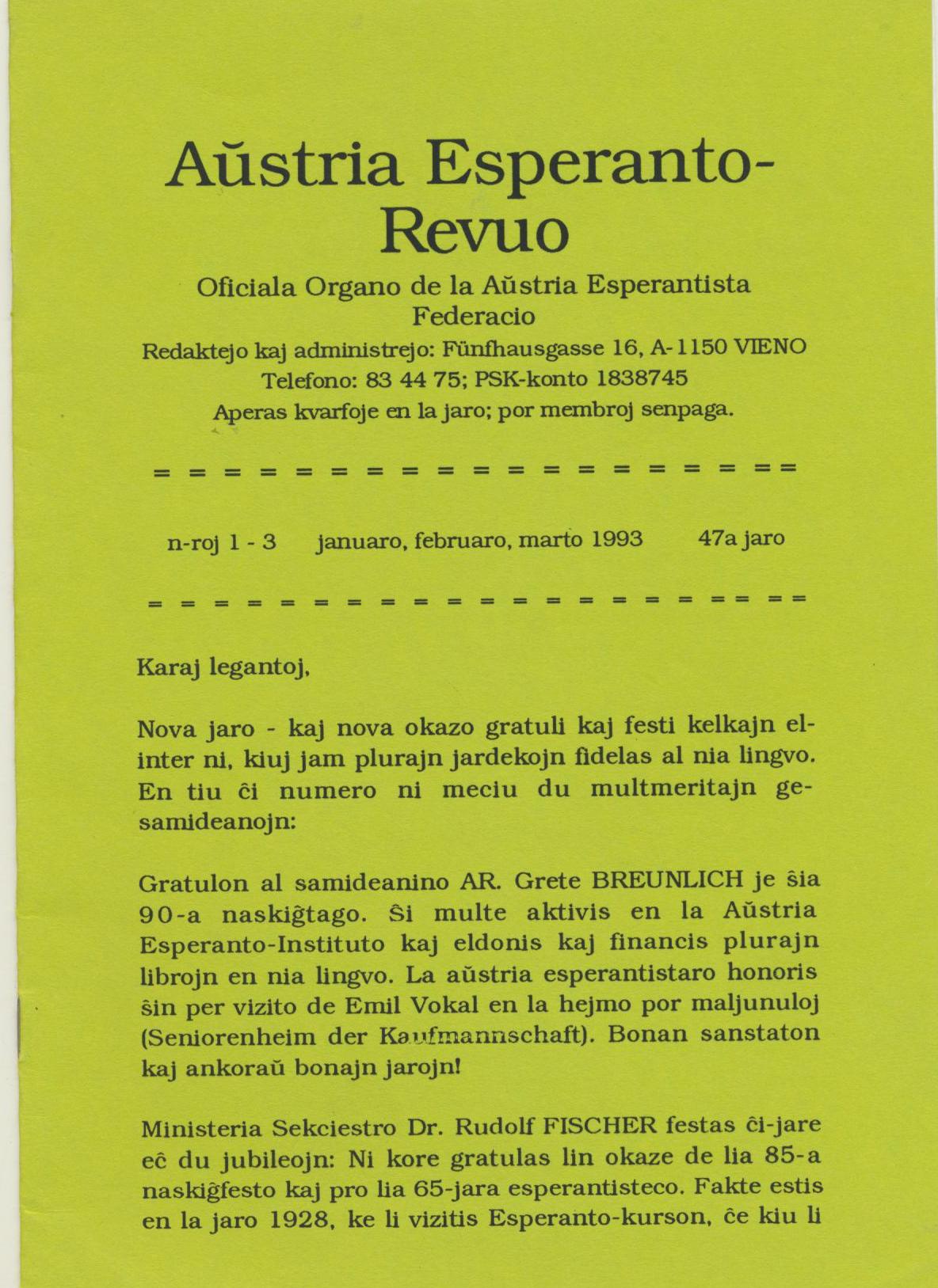 1993年《Austria Esperanto-Revuo》第1-3期