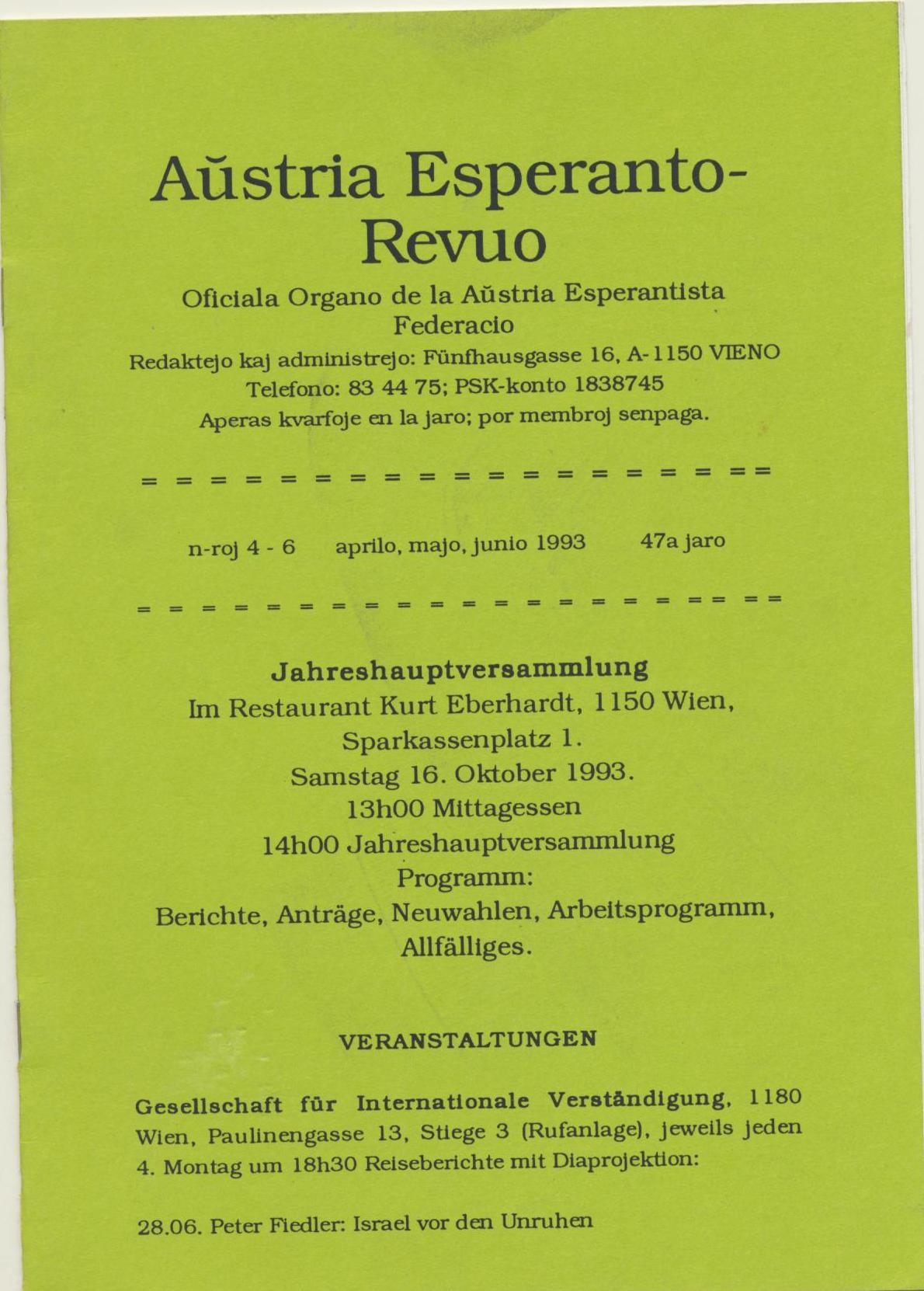 1993年《Austria Esperanto-Revuo》第4-6期