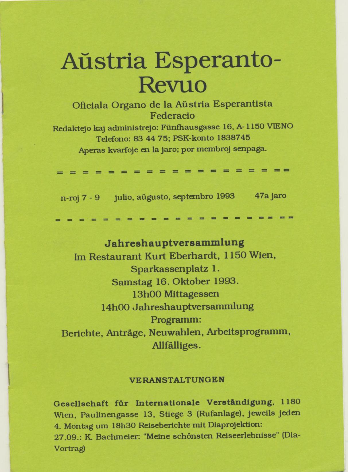 1993年《Austria Esperanto-Revuo》第7-9期