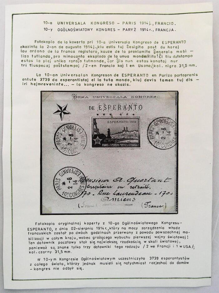 1914年巴黎第10届国际世界语大会实寄封复印展片