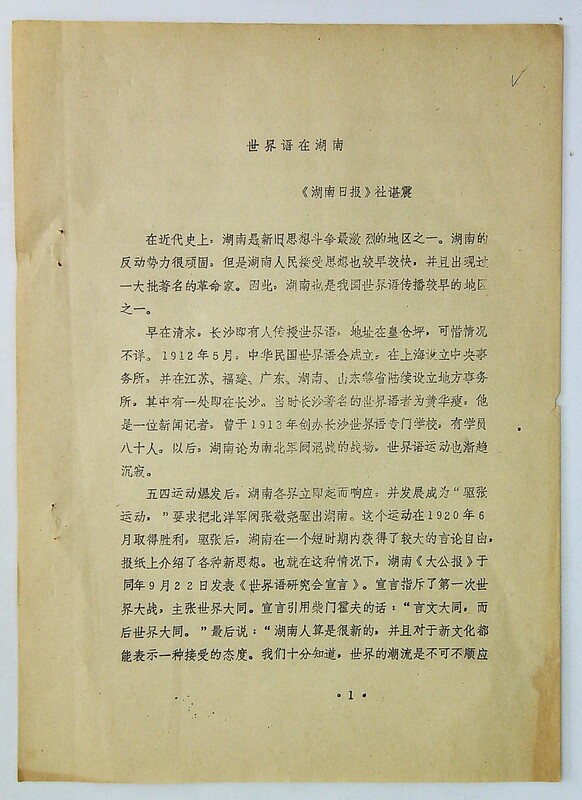 1983年11月《湖南日报》社谌震撰写的文章《世界语在湖南》