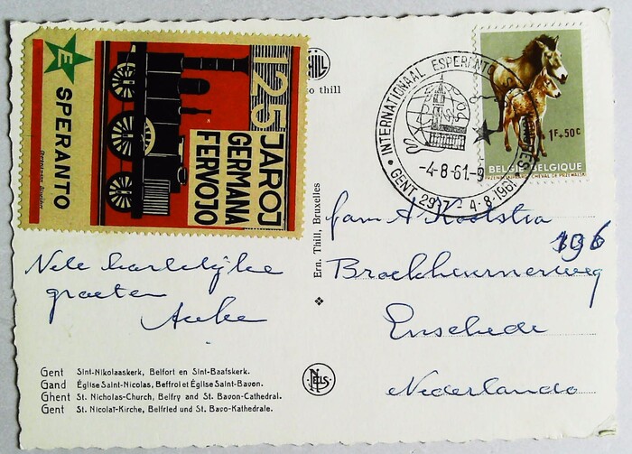 1961年根特第34届全世界超民族协会大会实寄明信片