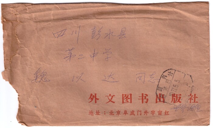 外文图书出版社给魏以达寄约稿通知的信封