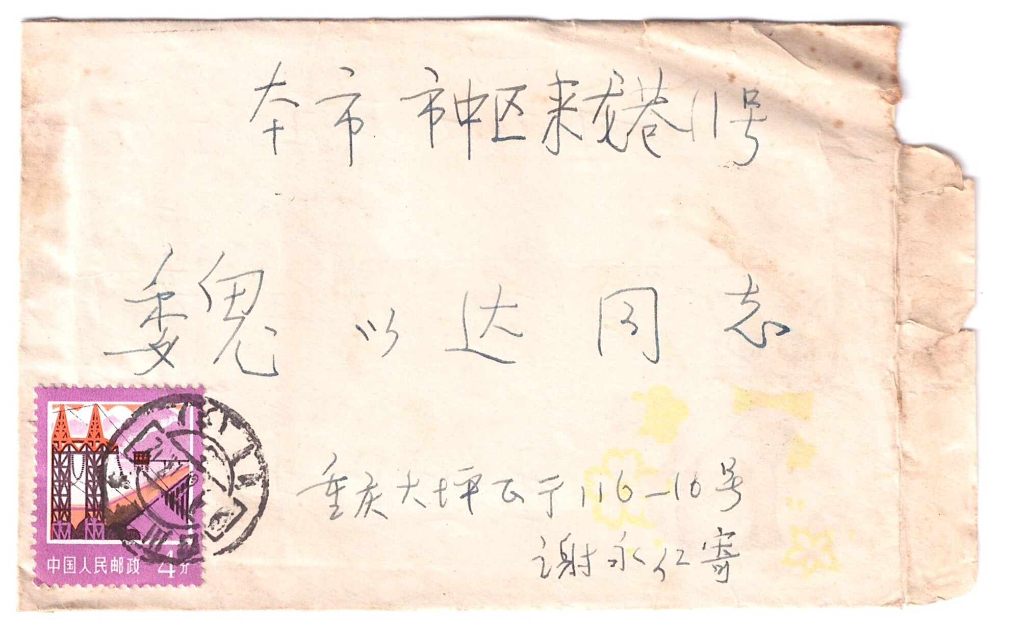 1979年8月29日四川外语学院给魏以达寄研究生录取通知的信封