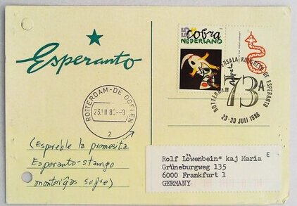 1988年鹿特丹第73届国际世界语大会实寄明信片