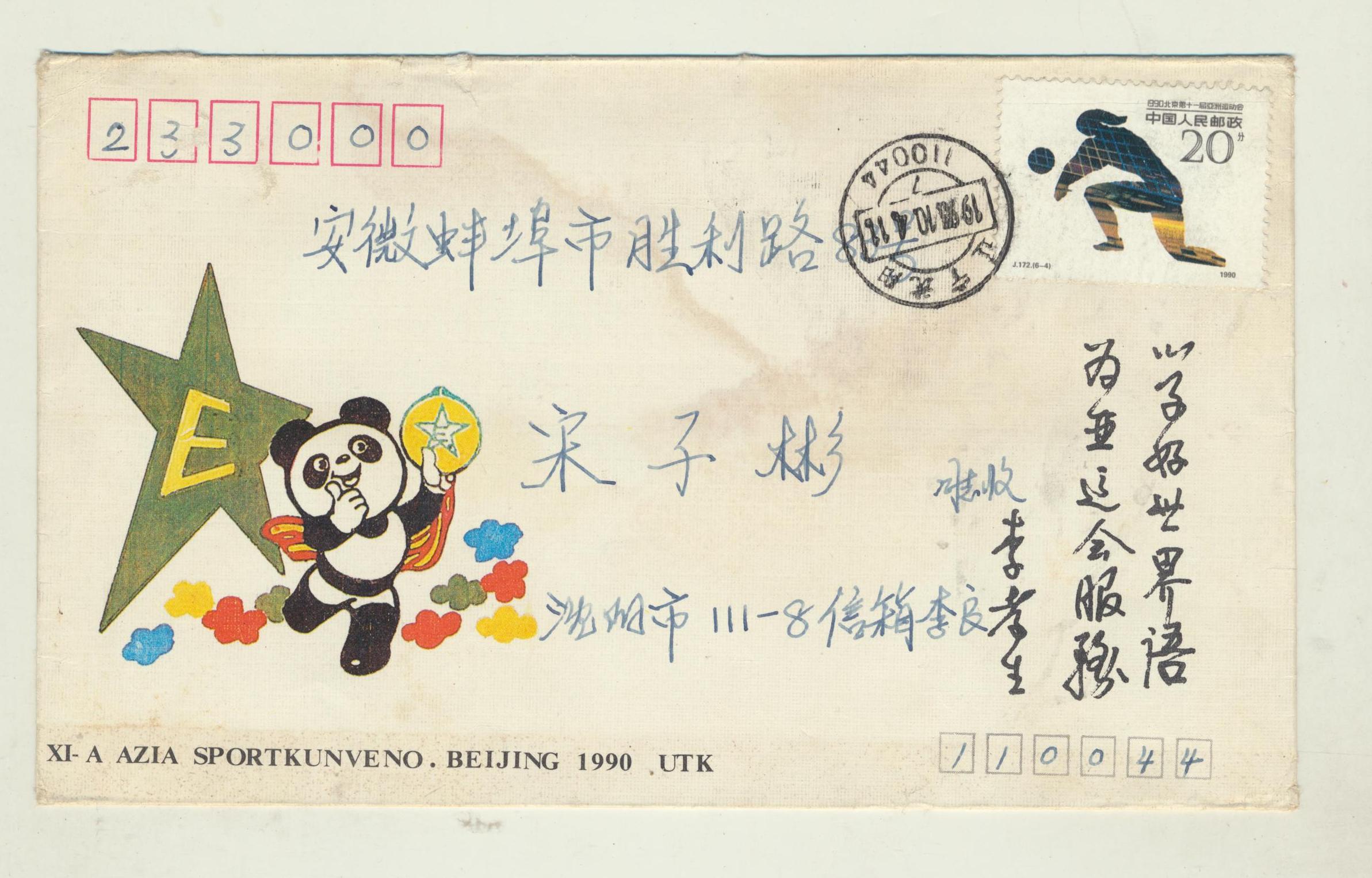 1993年10月4日李良寄给宋子彬的“第11届亚运会首日封”