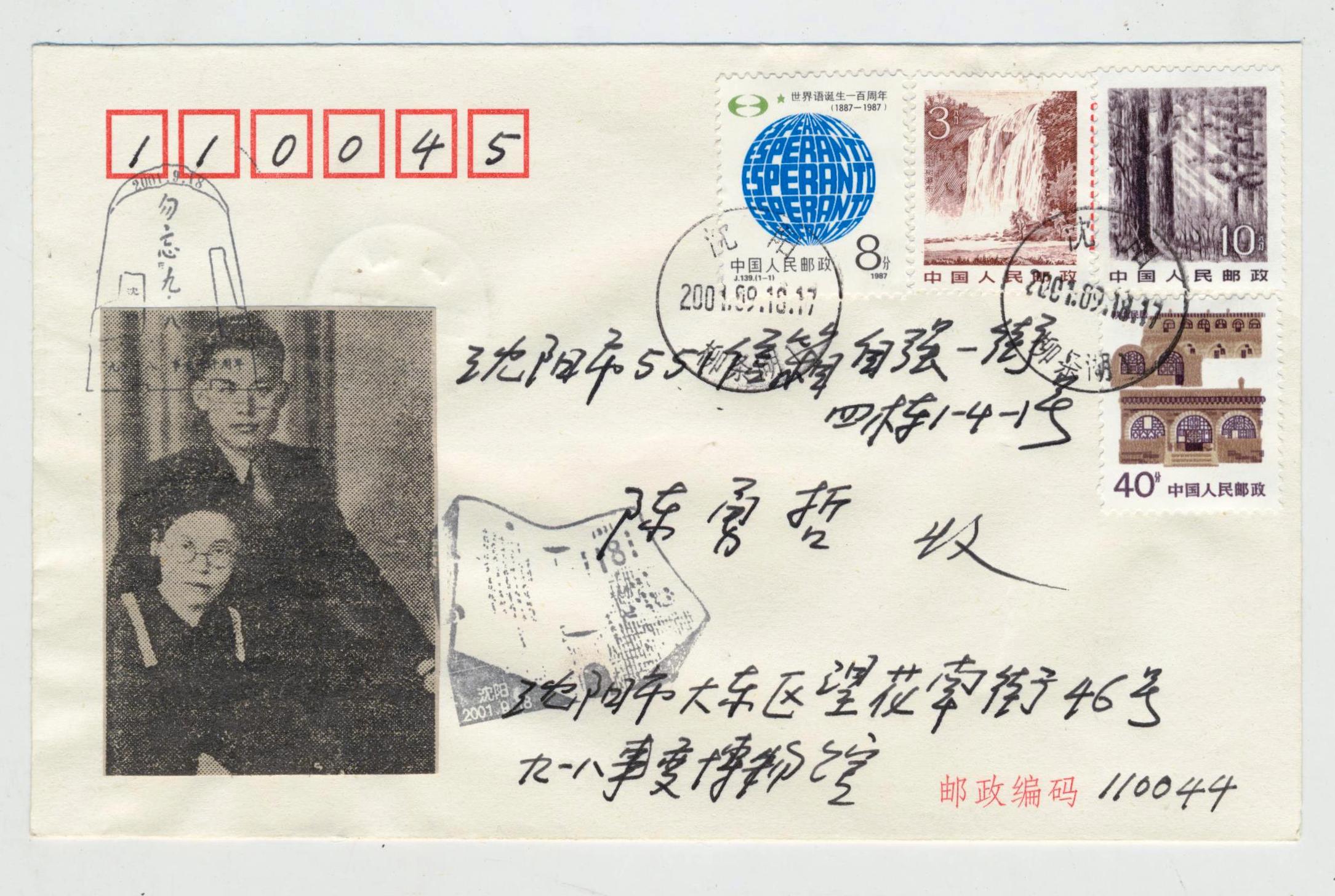 2001年九一八博物馆寄给陈勇哲的纪念封