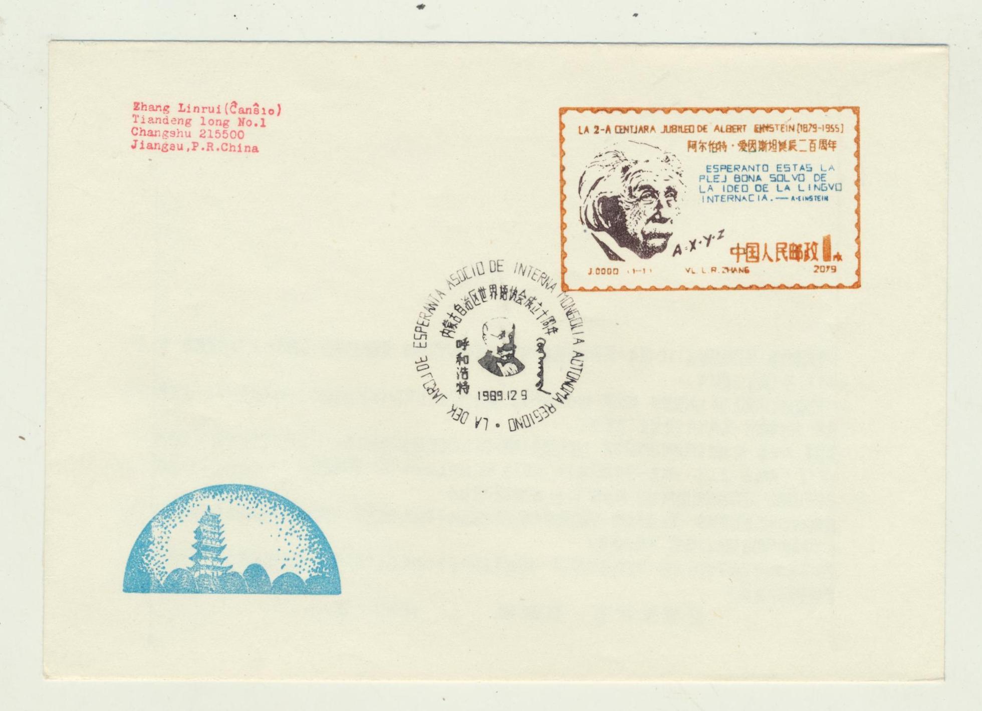1989年内蒙古世界语协会成立10周年纪念封