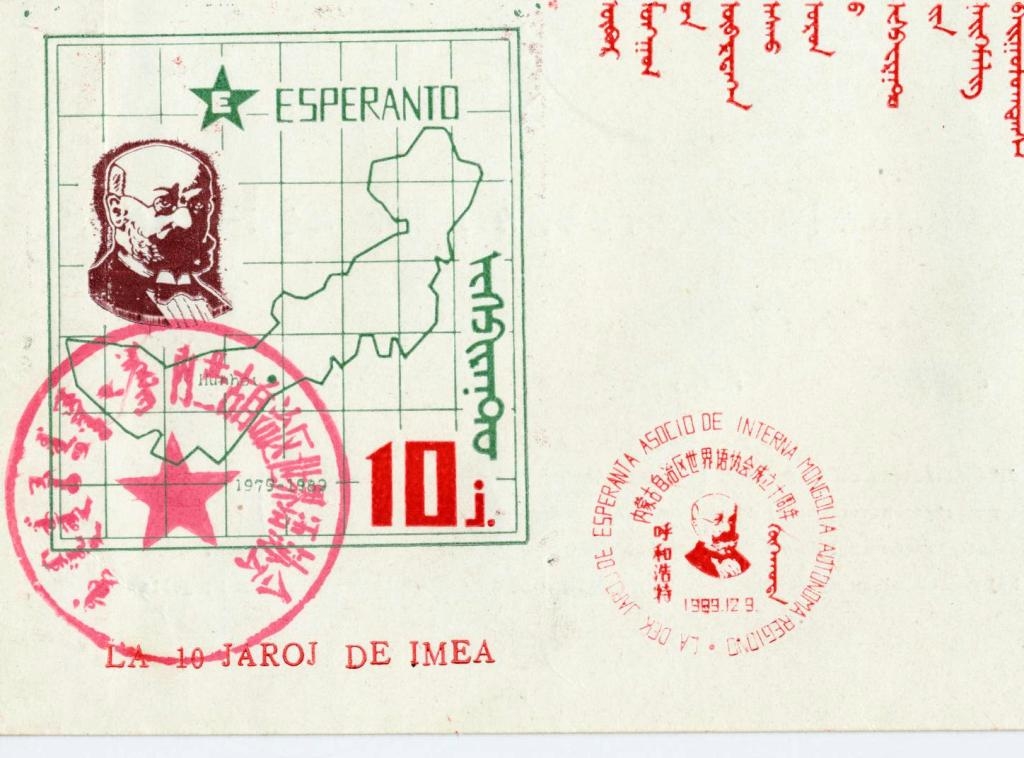1989年张麟瑞设计的内蒙古世界语协会成立10周年纪念戳