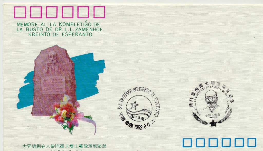 1992年青岛柴门霍夫雕像落成纪念封