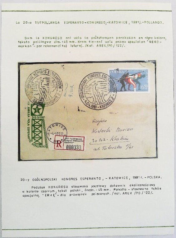 1981年卡托维兹第21届波兰全国世界语大会实寄纪念封展片