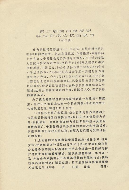 1988年8月16日第二届国际世界语科技学术会议倡议书(讨论稿)