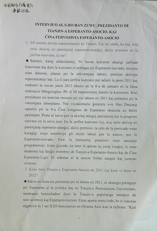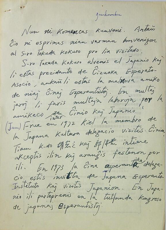 欢迎日本世界语协会来访发言稿(手稿)