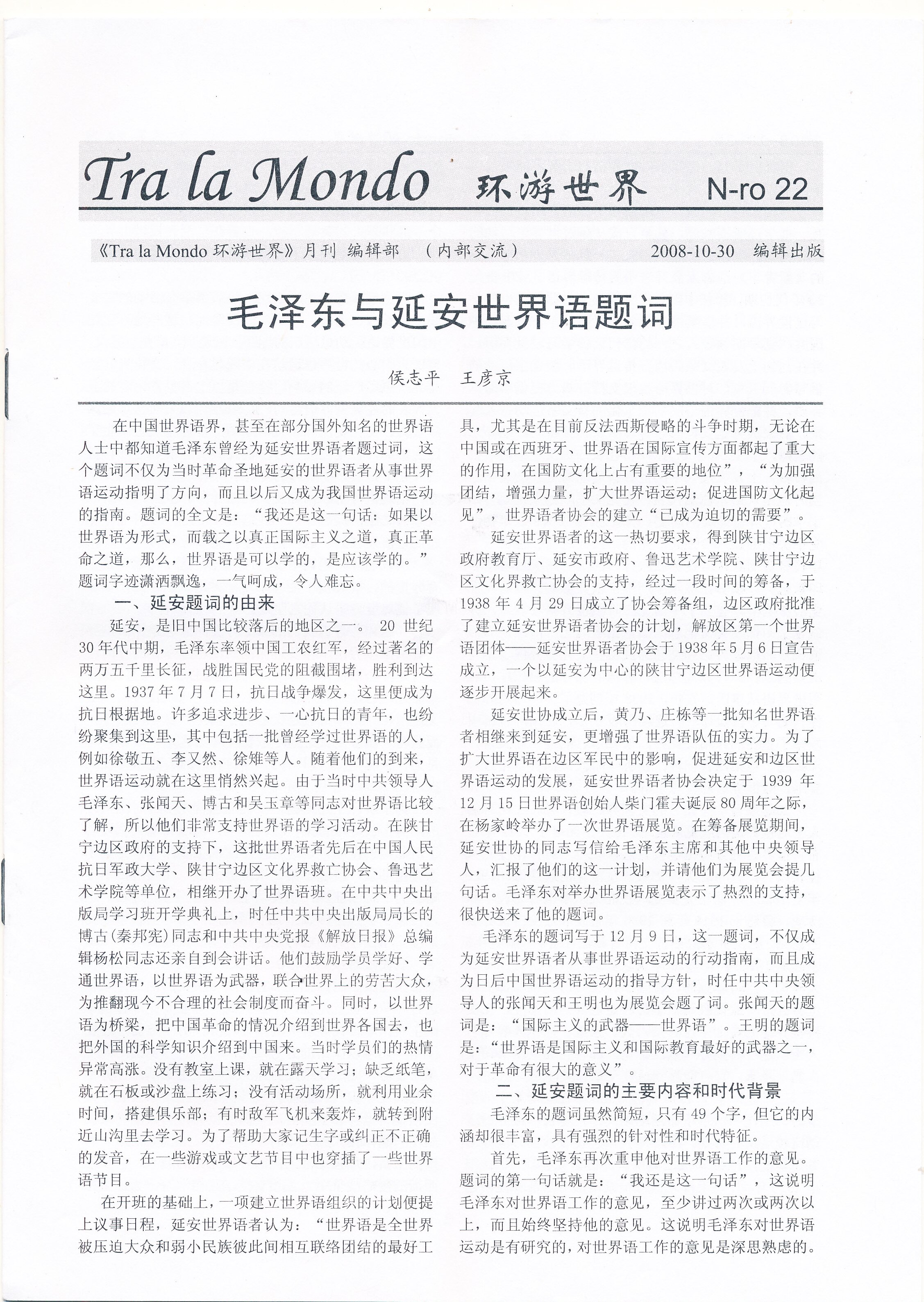 2008年北京《Tra la Mondo》第22期