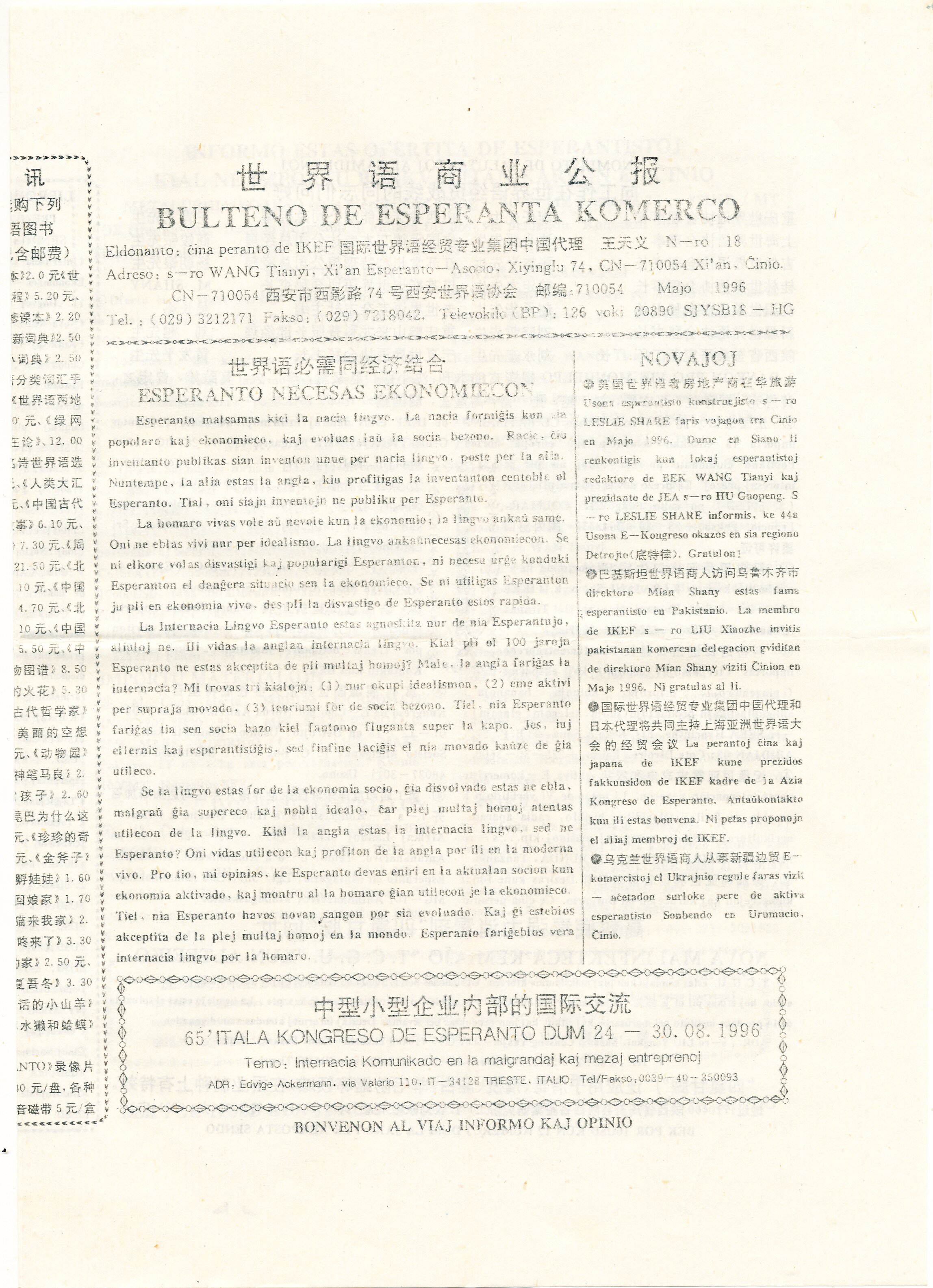 1996年西安《世界语商业公报》第18期