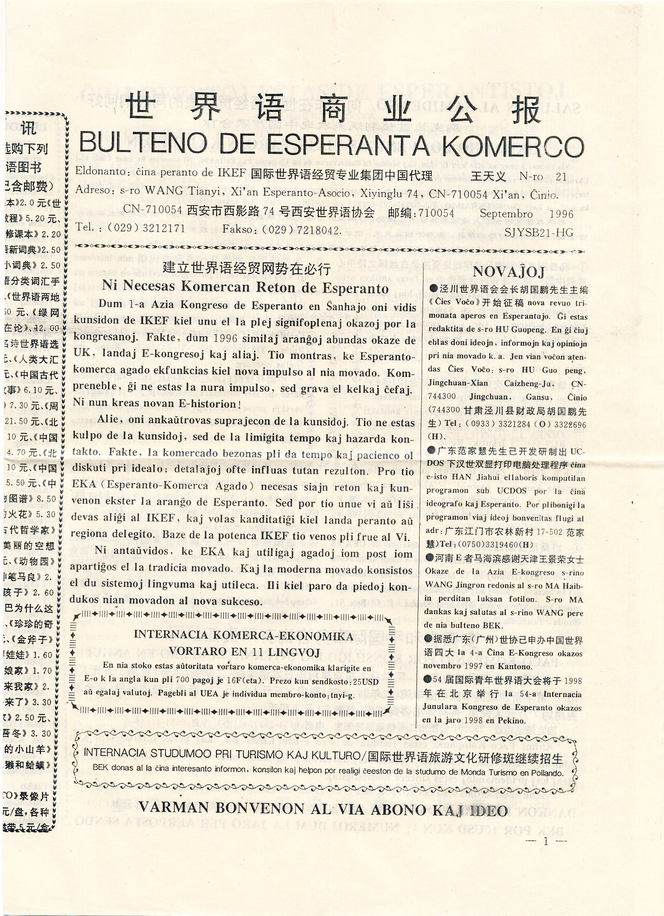 1996年西安《世界语商业公报》第21期