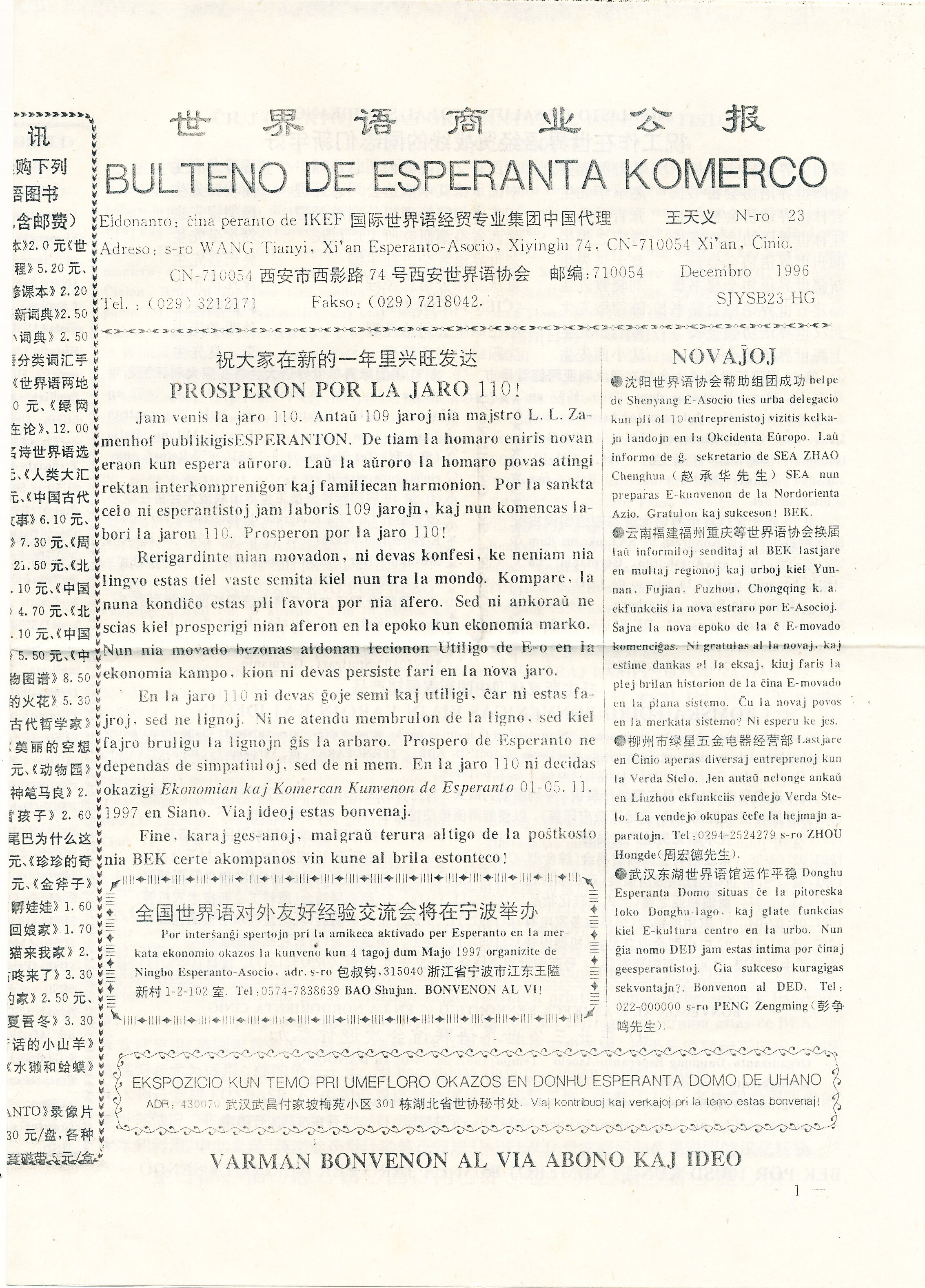 1996年西安《世界语商业公报》第23期