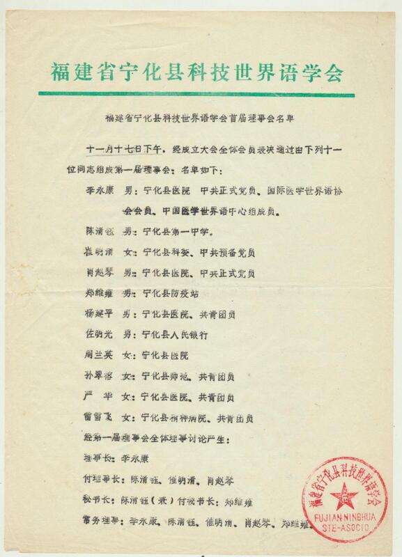 1985年福建省宁化县科技世界语学会首届理事会名单