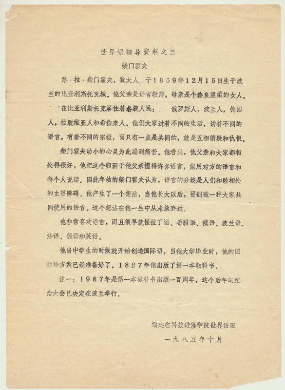 1985年福建省科技进修学院世界语班《世界语辅导资料之三》