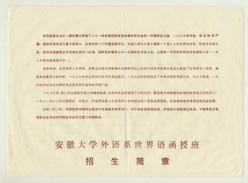 1983年5月10日安徽大学外语系世界语函授班招生简章