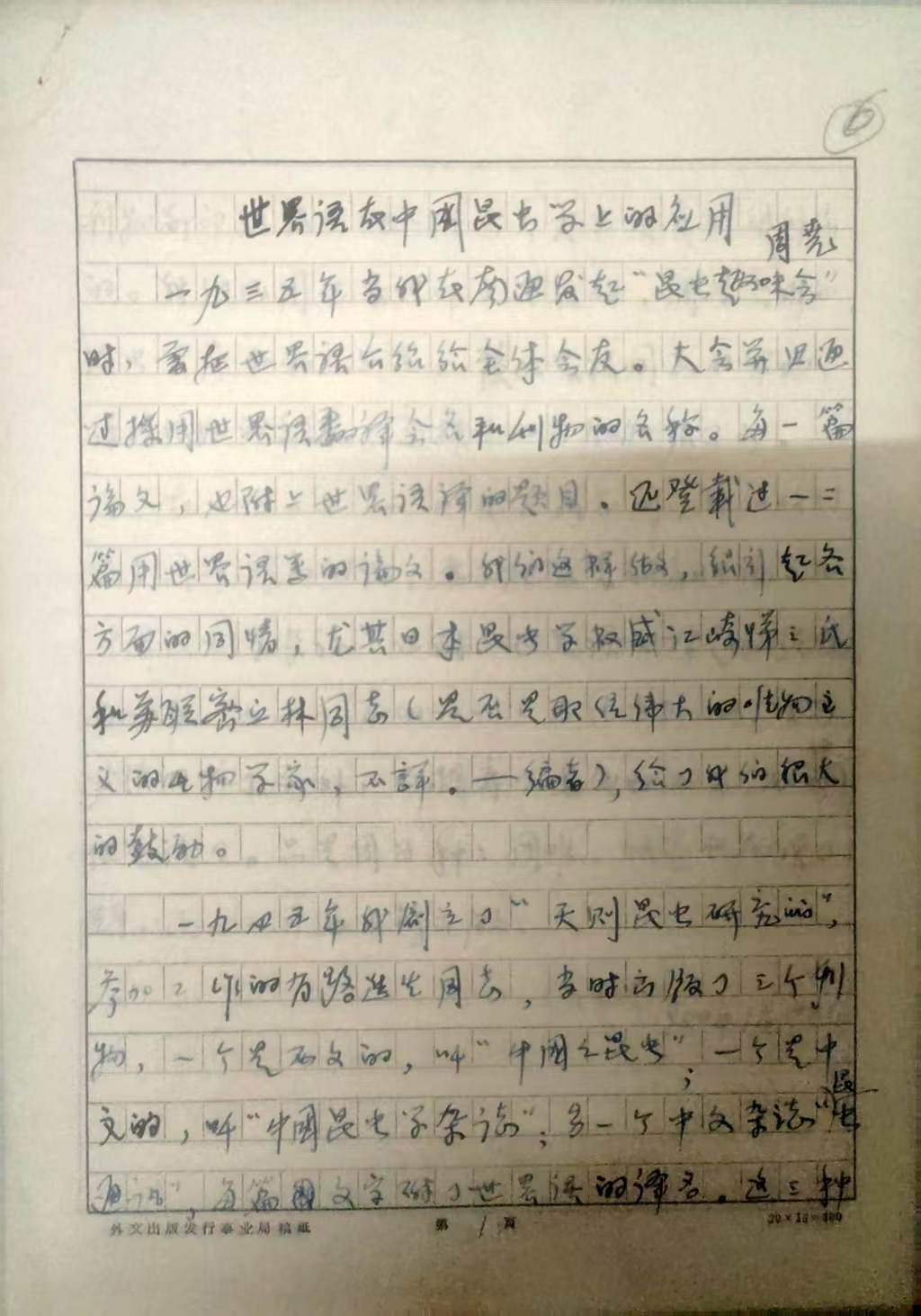 方善镜手稿《访乐嘉煊同志--一个不倦的世界语工作者》