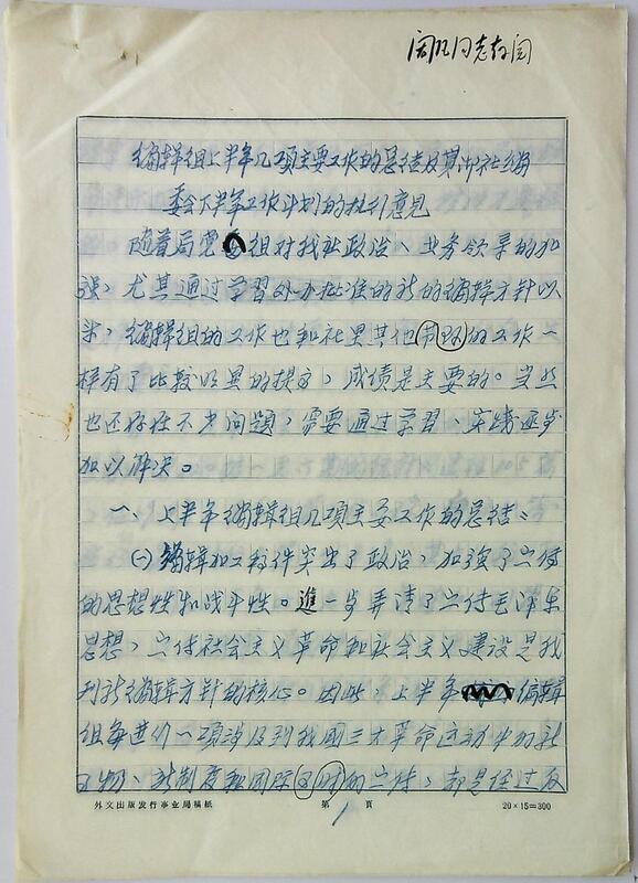 1966年《人民中国报道》编辑组上半年几项重要工作总结