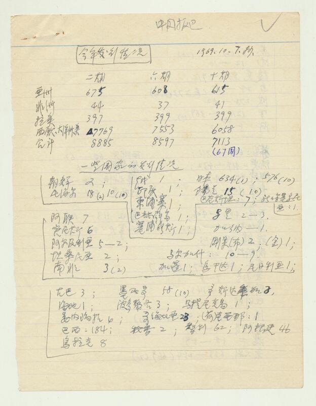 1969年《人民中国报道》发行数量统计