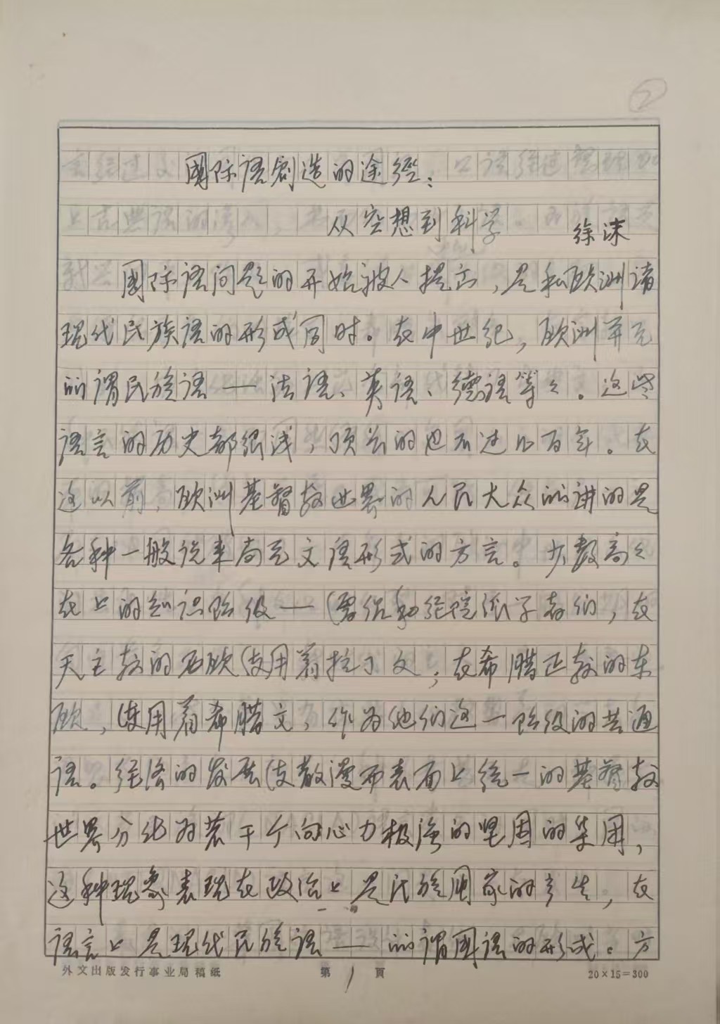 徐沫手稿《国际语创造的途径:从空想到科学》